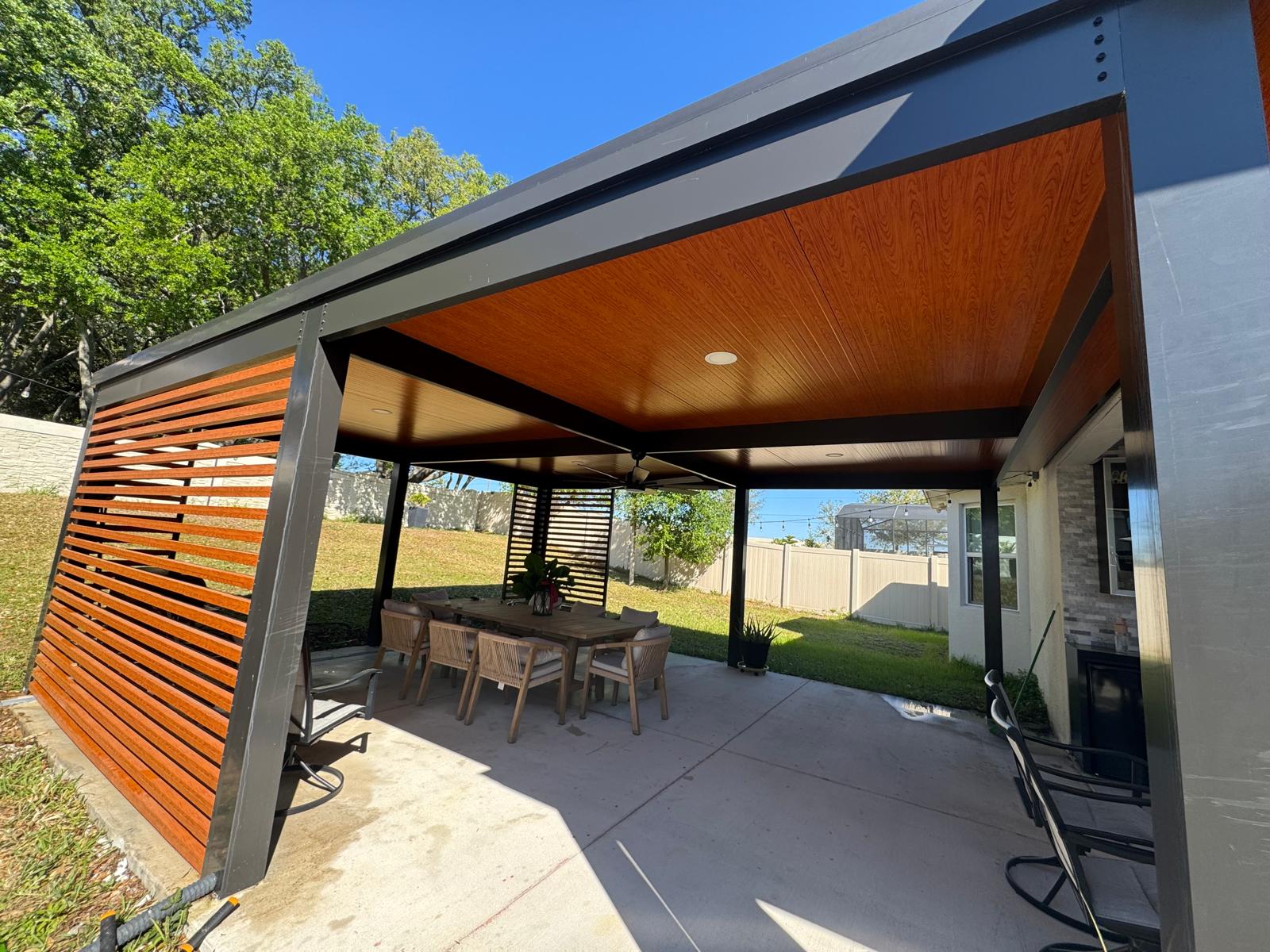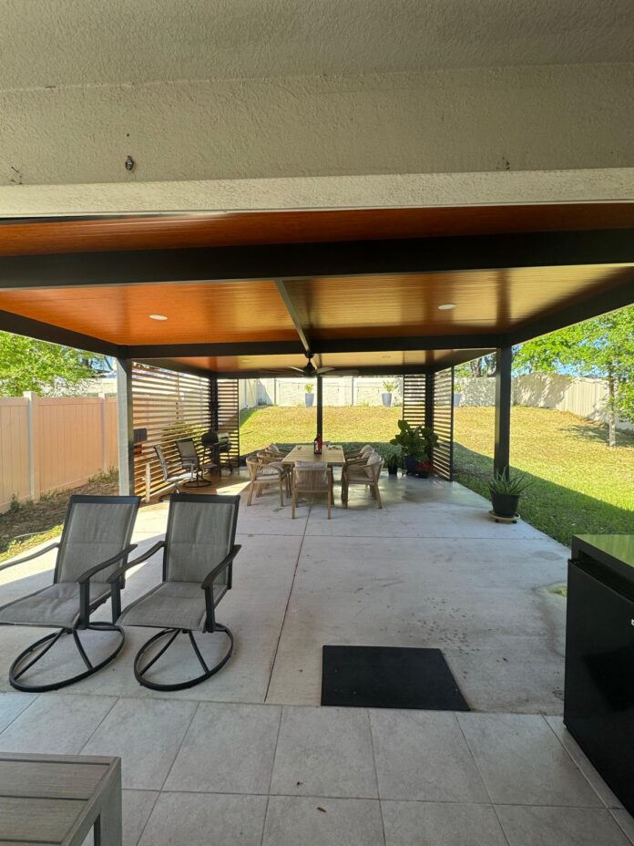 Ancover Cay Blvd, Orlando – Pergola With Roof Insulated Panel Share This Project FacebookTwitterEmailWhatsApp If you’re considering a pergola, we offer modern and functional designs with an insulated roof, allowing you to enjoy your patio year-round while staying protected from sun and rain, to enjoy together. Lemon Bay Isles Community, Englewood FL, Carport Conjunction Way/City of Apokpa – Screen Room Screen room renovations transform outdoor spaces into functional, stylish,... Goldstein St. Downtown/City Punta Gorda – Bathroom transformation Turning small spaces into functional, elegant, and modern areas.... Golf Aire Blvd/Polk County – Pergola With Roof Insulated Imagine a pergola designed for play, learning, and quality... Let’s create something exceptional together. REQUEST A QUOTE